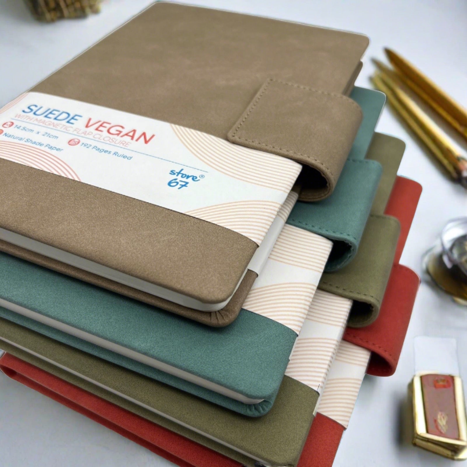 Vegan Suede Olive Green with Magnetic Flap Notebook